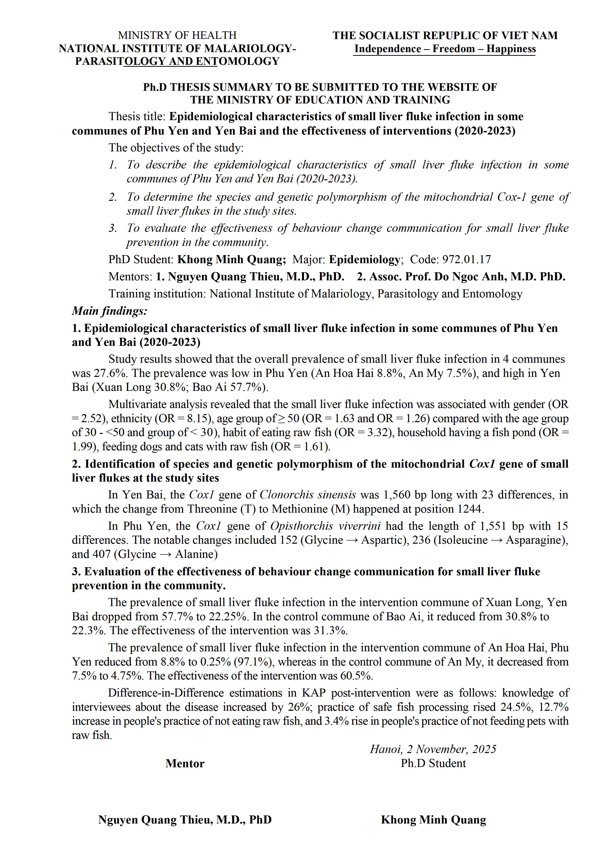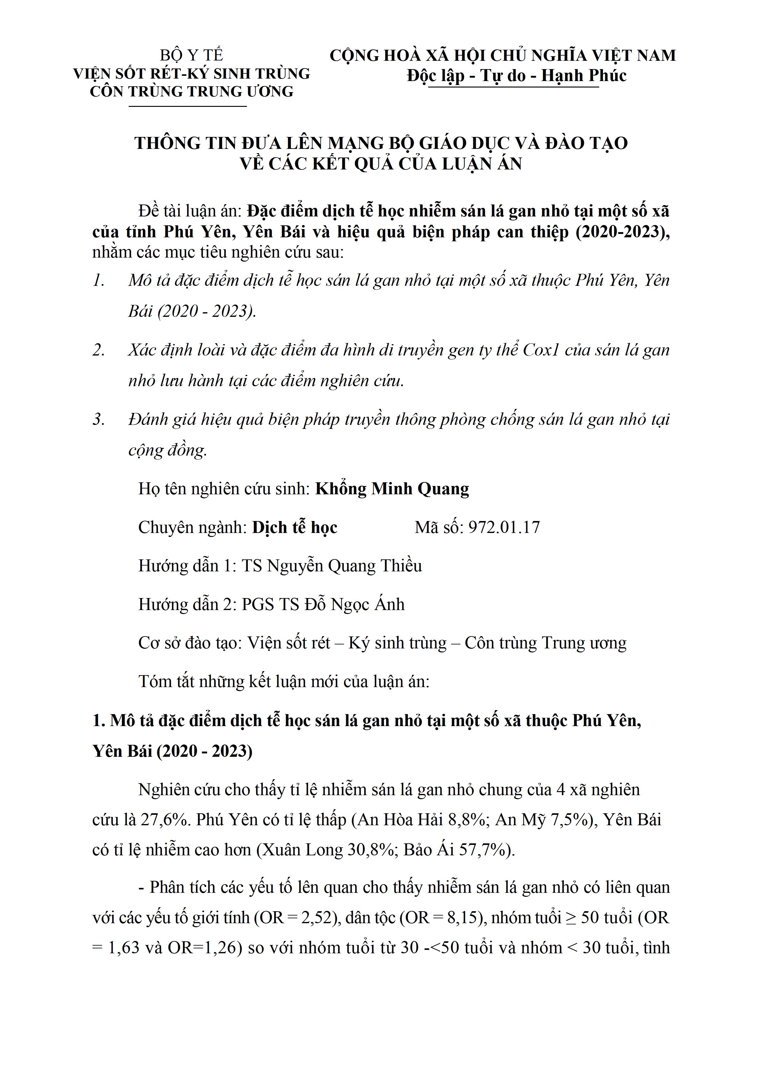 Thông tin và kết quả luận án của NCS Khổng Minh Quang