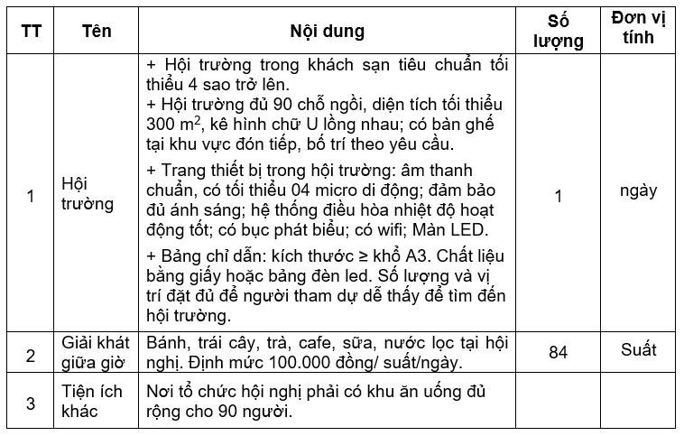 Để phục vụ cho công tác phê duyệt lựa chọn đơn vị thực hiện hoạt động nói trên, Ban Quản lý Dự án RAI4E kính mời các đơn vị quan tâm, có đủ năng lực, kinh nghiệm thực hiện khảo sát, báo giá dịch vụ “Cung cấp dịch vụ Hội trường và giải khát giữa giờ” như sau: