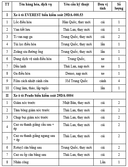 Thông báo mời báo giá dịch vụ sửa chữa ô tô  4/23/2026 4:59:15 PM