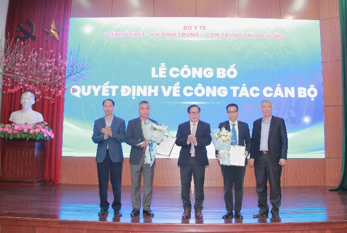 Trong khuôn khổ buổi lễ, Viện đã công bố và trao quyết định bổ nhiệm lại cho các đồng chí Lê Trung Kiên – Trưởng khoa Hóa thực nghiệm, Trần Huy Thọ - Phó Giám đốc phụ trách chuyên môn Bệnh viện Đặng Văn Ngữ thuộc Viện.