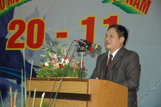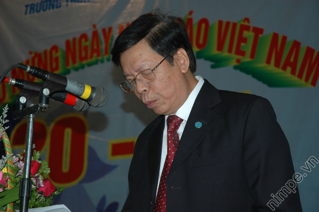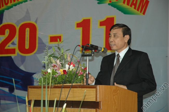 Hiệu trưởng PGS.TS Nguyễn Mạnh Hùng đọc diễn văn khai mạc và thư chúc mừng 20/11 của Bộ trưởng